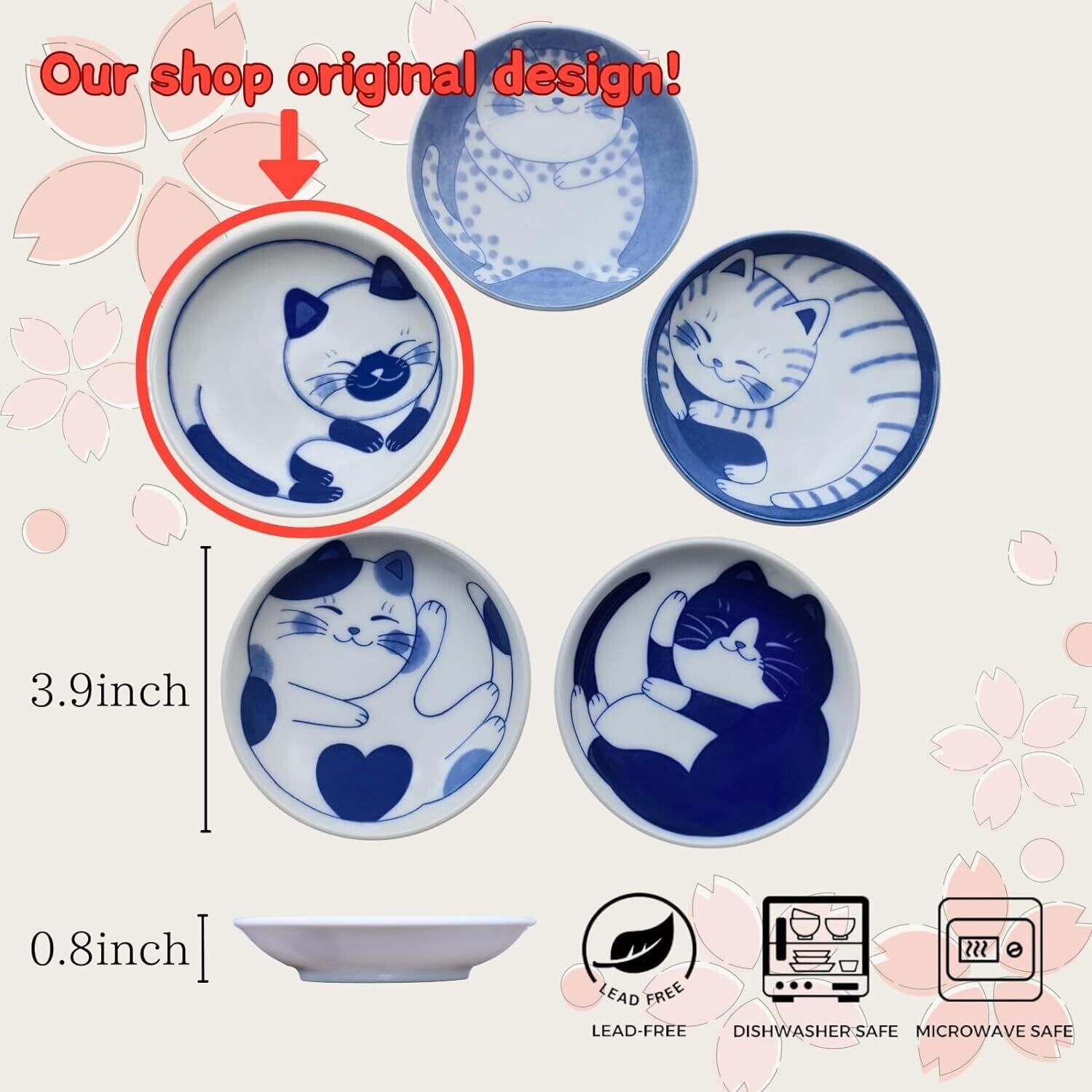 Cute cat plates made in Japan are perfect for sushi plates and soy sauce plates.