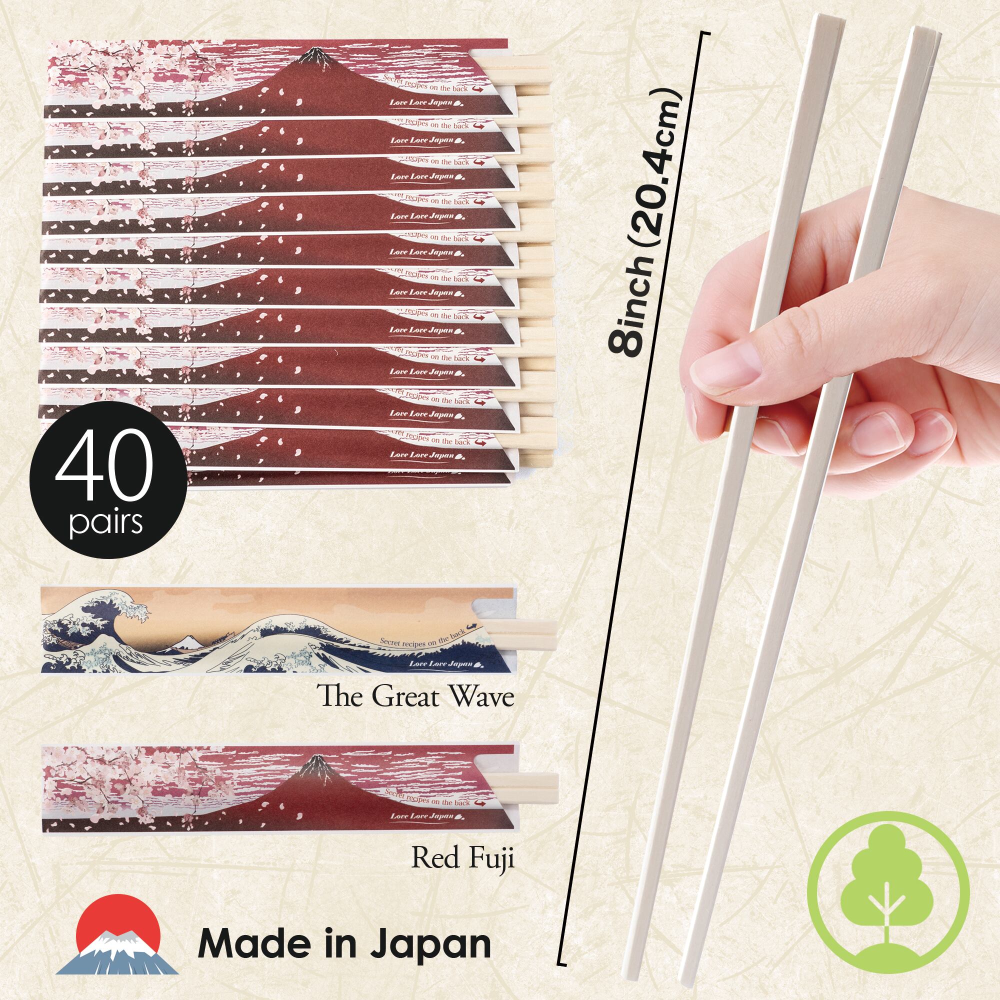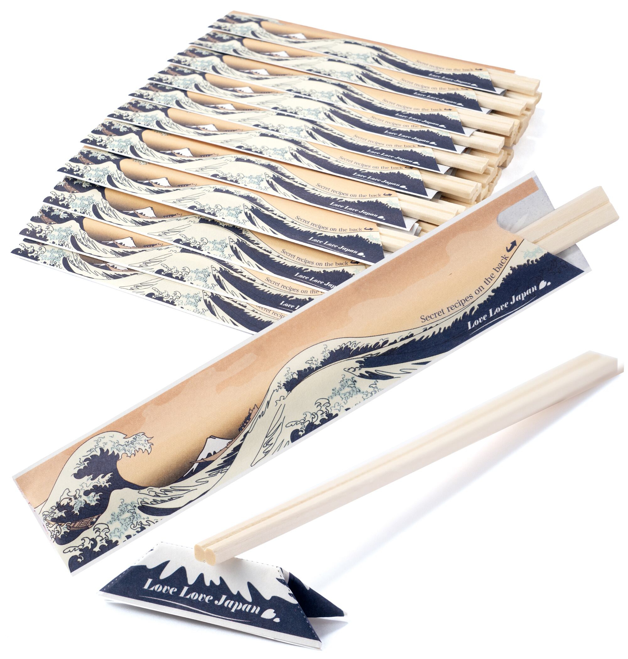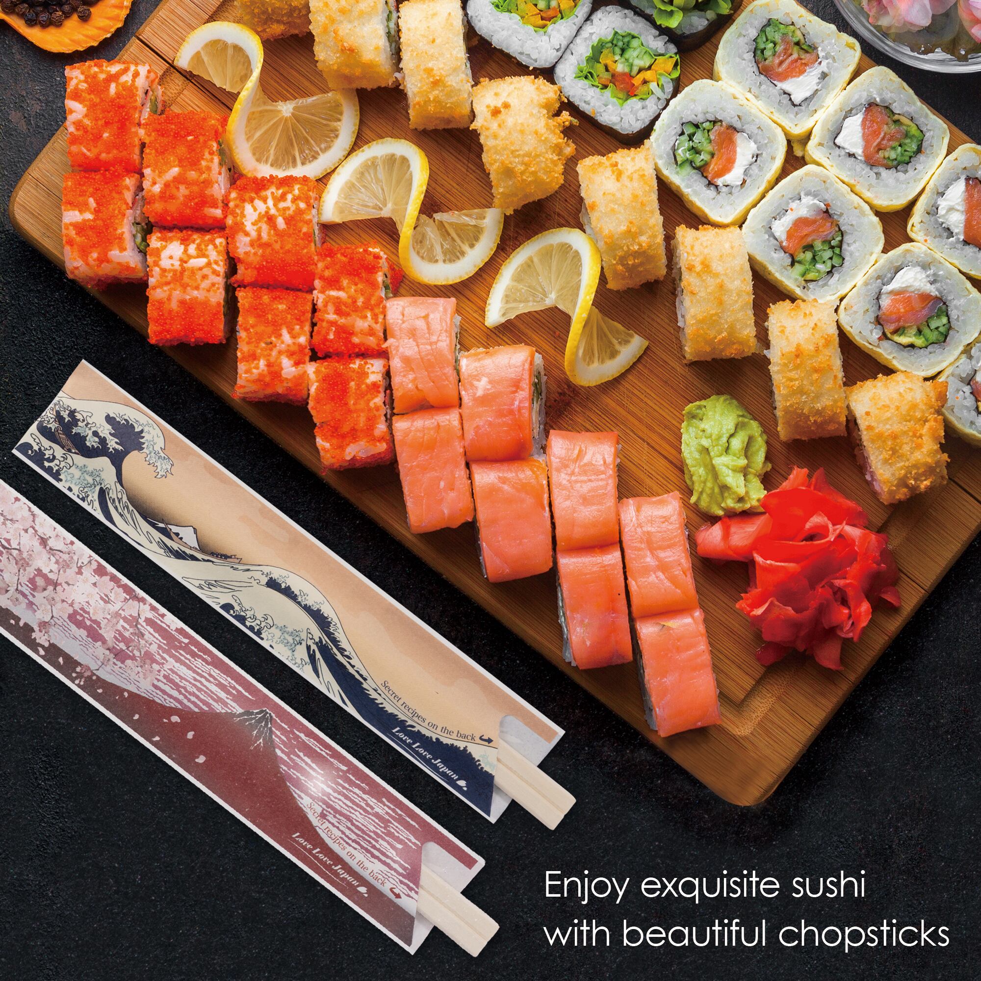 40 Pairs Disposable Chopsticks with Japan Hokusai Designed Origami Paper Rest, Individually Wrapped Chopsticks for Asian Japanese Dishes, Sushi Ramen (Great Wave)
